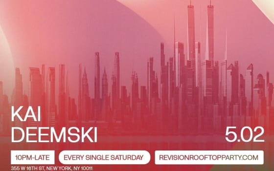 revision rooftop party. every single saturday night. a party in the clouds. meet us on the dance floor at one of new york city's most legendary venues, phd rooftop, for the night out you've been waiting for. djs spinning your favorite music, incredible panoramic views stretching from the hudson river to the empire state building, full scale concert production, rooftop lounge seating. phd is located on the 12th floor of dream downtown hotel. text +1 (917) 670-3532 for table inquiries. This event features a live musical arts performance by a house/EDM DJ.